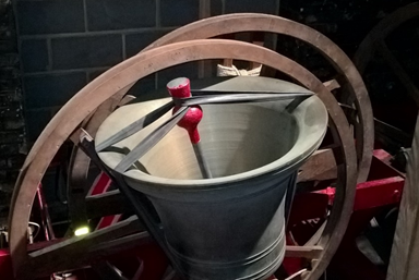 I got them each to bring the bell off the ‘stay’ a good 8-10”, without turning it fully over, then let it go back up again, slowing the rate of the bell’s movement until they could gently rest it back on the stay mechanism. The bell was hardly ever accidentally pulled off during this bit of learning. There is such a long feel of the bell just before setting, so they quickly learned to set it whenever I asked, and instantly and impressively to tower bells.